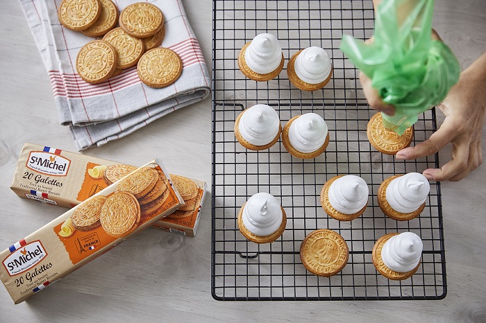 – מעבירים את המרנג לשק זילוף עם צנתר חלק ומזלפים על העוגיות תלוליות של מרנג.