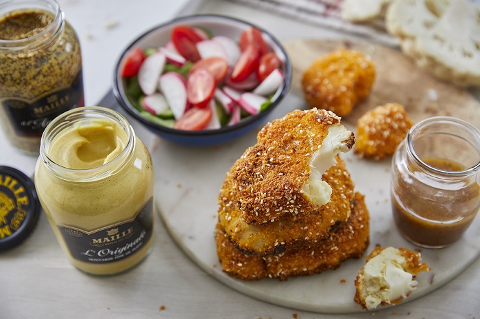 – מצפים את פרוסות הכרובית בקמח ולאחר מכן בביצה עם חרדל ולבסוף בפירורי לחם.